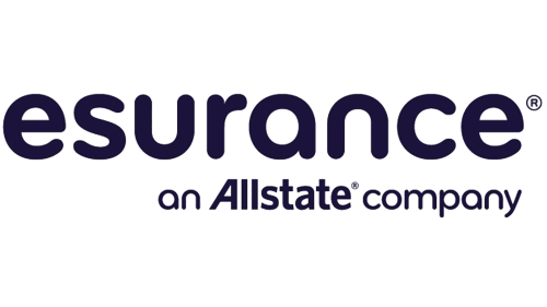 字標(biāo)是公司的名稱——“Esurance Online Auto Insurance”。“Esurance”是小寫字母,包括第一個字母“e”是藍(lán)色的,而所有其他字母都是綠色的。下面寫著“在線汽車保險”。它是藍(lán)色的,字體較小。